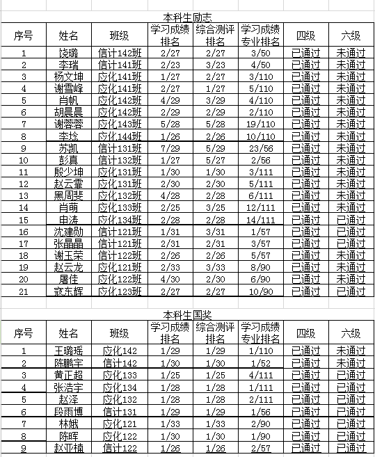 关于2015-2016学年度本科生国奖、励志评选结果的公示