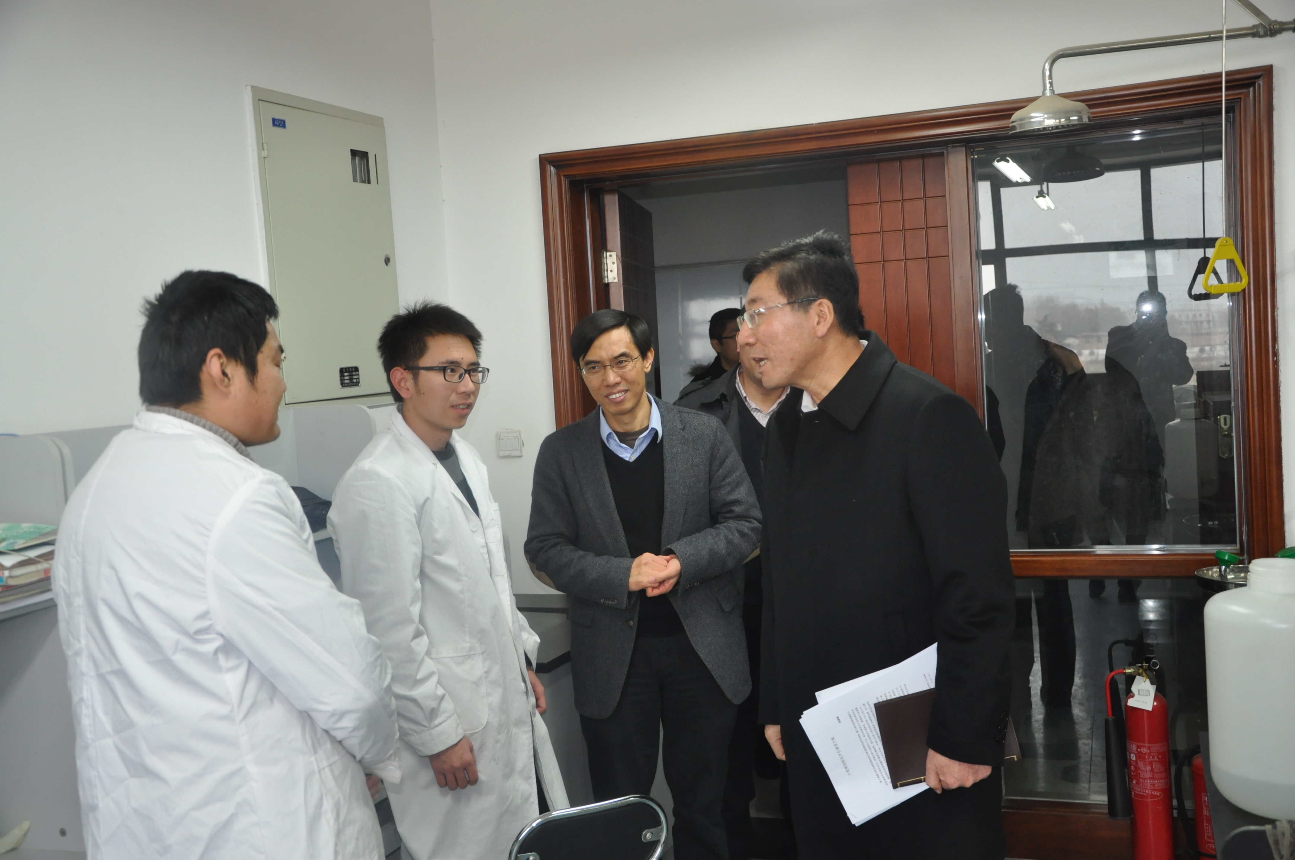 孙其信首先走访了理学院孙世国教授、裴志超教授等的科研实验室,了解他们科研进展情况、遇到的困难以及研究生的工作、学习情况,并鼓励他们踏踏实实做学问。