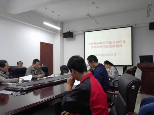 9月28日晚上7点30,在 E316举行2015年理学院大学生科创项目结题验收工作,会议由教学副院长郭满才主持,张社奇教授、王俊儒教授、耿会玲副教授及各项目组成员参会。