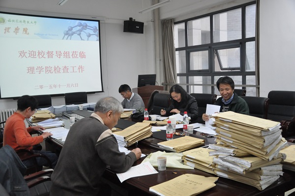 为规范教学管理,不断提高教学质量和效果。11月6日,在牛立新老师的带队下学校教学督导组一行6人莅临理学院开展2014—2015学年第二学期试卷及2015届毕业论文检查工作。