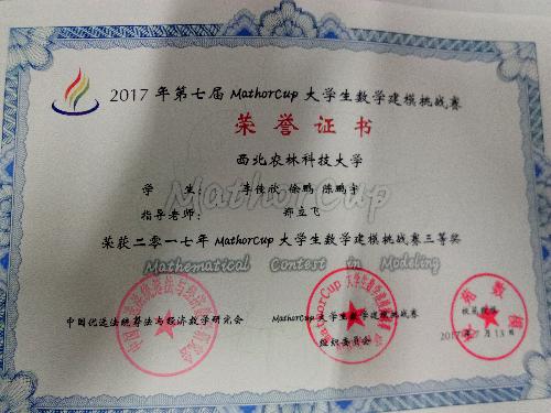 近日,第十届“中国电机工程学会杯”全国大学生电工数学建模竞赛与第七届MathorCup大学生数学建模挑战赛获奖名单公布,我校学生在两项比赛中再获佳绩:“电工杯”数学建模竞赛荣获二等奖,MathorCup挑战赛荣获三等奖,指导教师分别为理学院教师谢晓振和郑立飞。两个比赛的参赛队员均来自理学院信计2014级专业的学生,其中MathorCup获奖队伍由陈鹏宇、李佳欣和徐鹏参加,电工杯获奖队伍由陈鹏宇、张卓和徐鹏参加。
