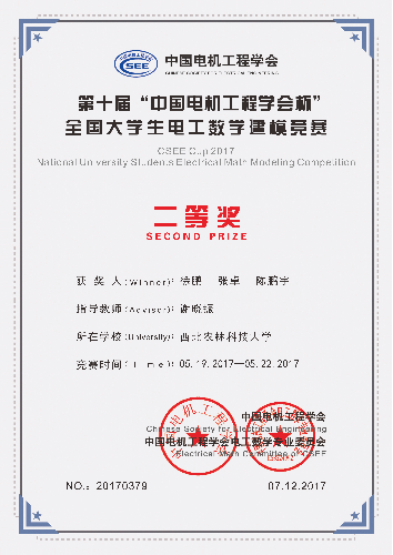 “中国电机工程学会杯”全国大学生电工数学建模竞赛是目前国内最具影响力、显著提高学生创新意识和综合素质的大学生竞赛项目之一。竞赛需要参赛队伍根据参赛题目,三人组队合理分工,在三天三夜的时间内完成一篇包括模型的假设、建立和求解、算法的设计和计算机实现、结果的分析和检验、模型的改进等方面的论文。这种赛制可以提高团队合作能力、快速查找参考文献等能力。学生可以在竞赛中逐步提高团队的磨合程度、并调整团队进行优化组合,既提高了团队工作效率,又有助于选拔数学建模人才。本次比赛全国组委会根据全国专家组的评审结果确定全国一、二、三等奖,一等奖约占5%,二等奖约占15%,三等奖约占25%。